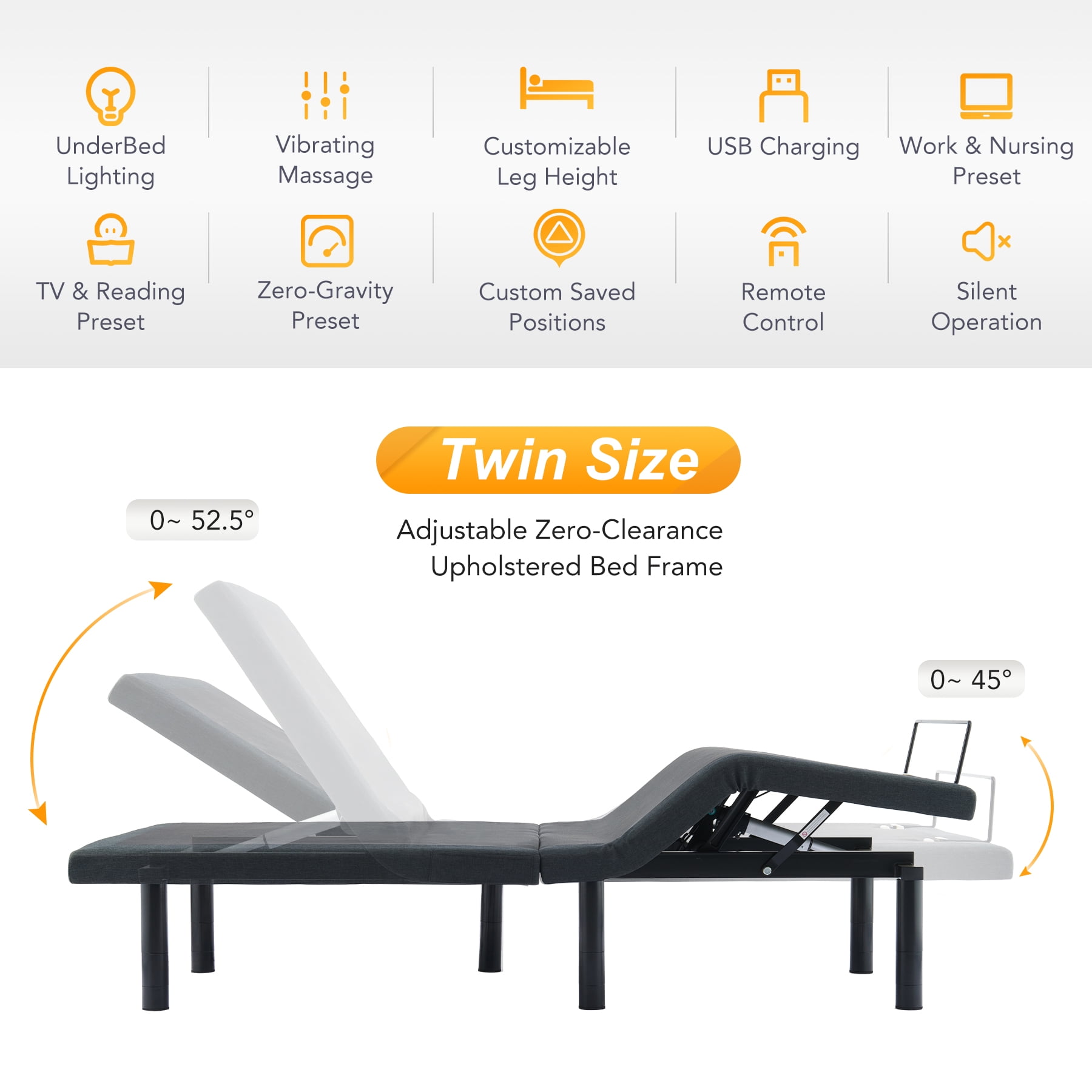 Bestco Adjustable Twin Xl Bed Base Frame With Remote Massage Incline Lighting More Walmart Com